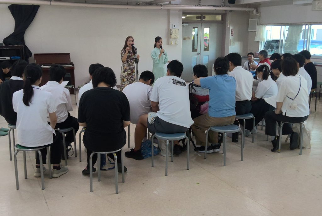 本事業は、2026年に愛知・名古屋で開催されるアジア競技大会・アジアパラ競技大会を契機とし、アジア各国・地域との交流を促進し、アジアと愛知の次世代を育むことを趣旨としたものです。本校では9月27日(土)家族参観日に合わせて、中国とベトナムから講師をお招きし、挨拶や歌の練習、楽器の紹介や歌唱・演奏などを行いました。