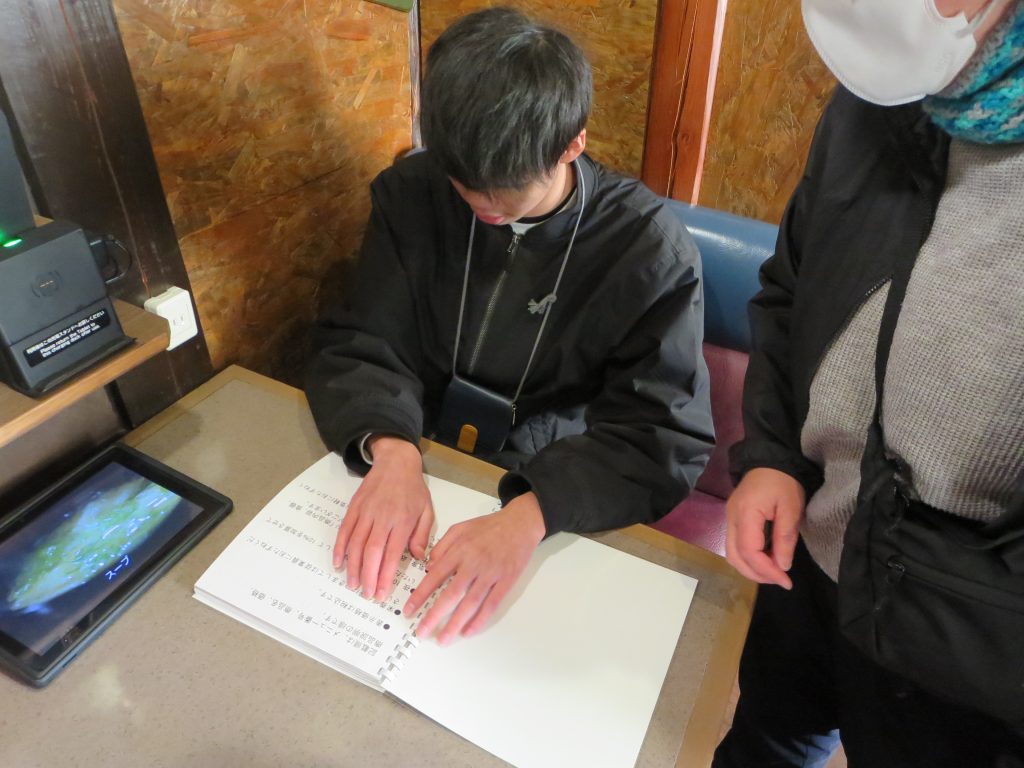 訪問した店舗には視覚障害者向けの点字メニューが用意されており、舎生が自分で内容を確かめていました。一方で、注文や会計にタッチパネルを使用する場面もあり、見えにくさや操作の難しさを感じる場面もありました。普段とは異なる環境での食事はよい経験となりました。